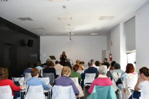 La terapeuta Mª José Quero ha impartido el taller de la Ansiedad a la Calma con Tapping y Neuromúsica esta tarde. El Centro Cultural ha acogido esta experiencia terapéutica diseñada para