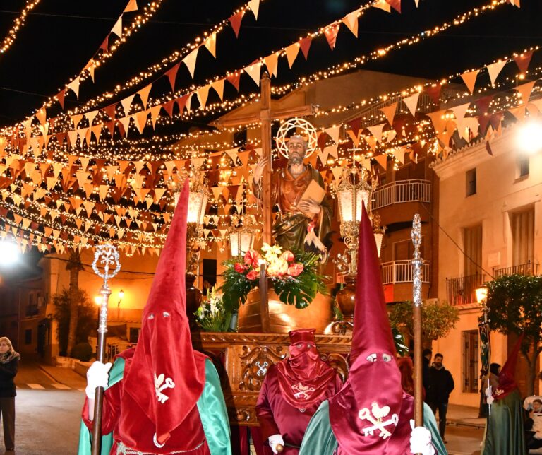 Pinoso continua con las celebraciones de la Semana Santa 2026, este lunes ha tenido lugar el primer traslado procesional. La imagen de San Pedro Apóstol ha sido la protagonista de