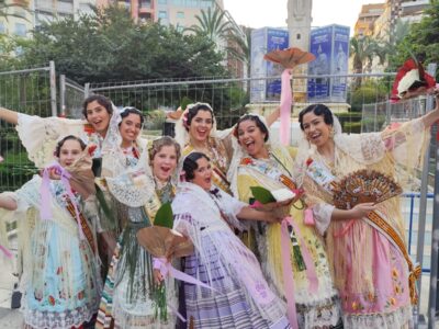Las Reinas y Damas de Pinoso participan en la ofrenda floral de Alicante acompañadas por miembros de la corporación municipal