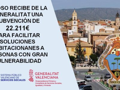 La Vicepresidencia Primera y Conselleria de Servicios Sociales, Igualdad y Vivienda ha concedido al Ayuntamiento de Pinoso una subvención de 22.211,15 € para favorecer el acceso de personas muy vulnerables […]